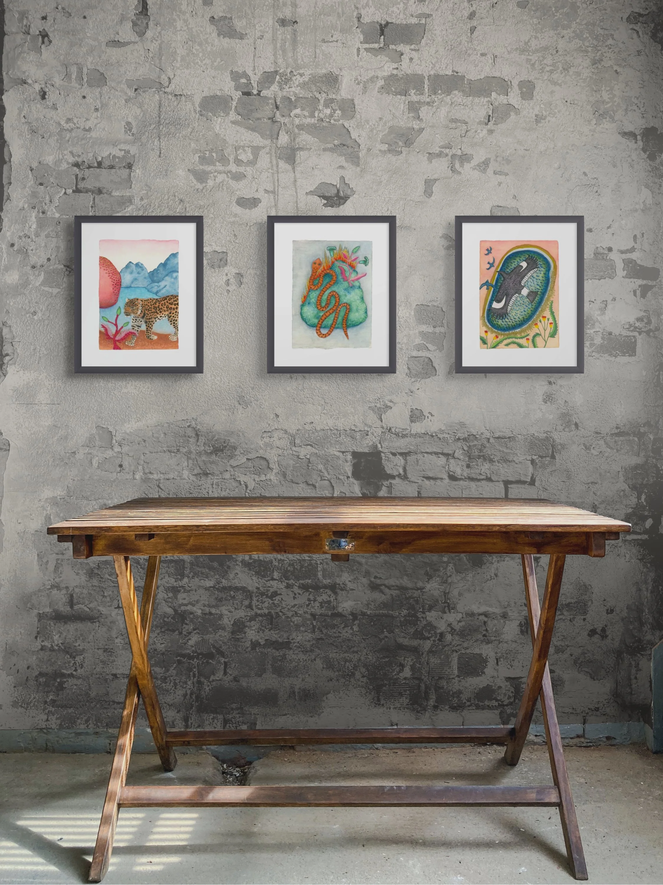 Original Minhwa water colour on cotton hand embellished with embroidered work by Chrissy Hammond